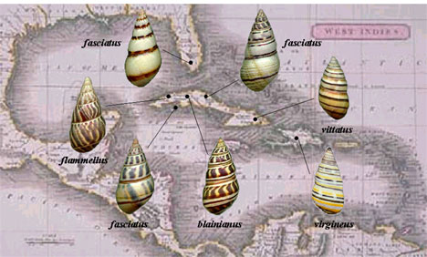 - Ecology - Taxonomy - Hybrids - DispersalMap of the Liguus Distribution Within the Caribbean Area